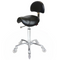 Saddle Stool with Back Support - Black Upholstery Chrome Base and Click'nClean Wheels